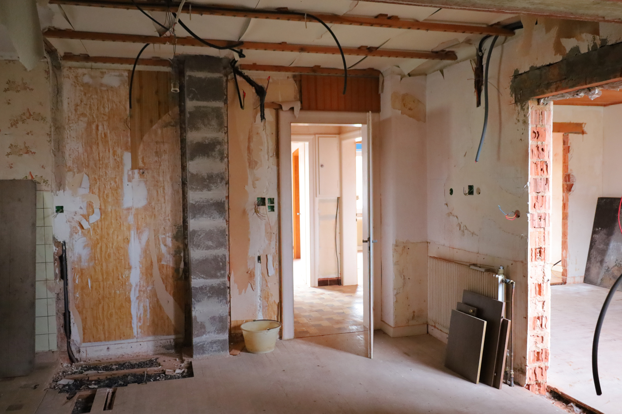 Des travaux de rénovation ont été entamé dans la maison : ouverture de murs, remplacement du compteur électrique et des cablages, remplacement partiel des menuiseries..